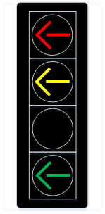 - Red arrow means STOP and remain stopped. No left turns allowed.